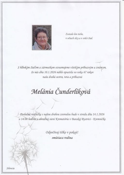 S hlbokým žiaľom oznamujeme, že nás navždy opustila dňa 10.01.2026, naša občianka