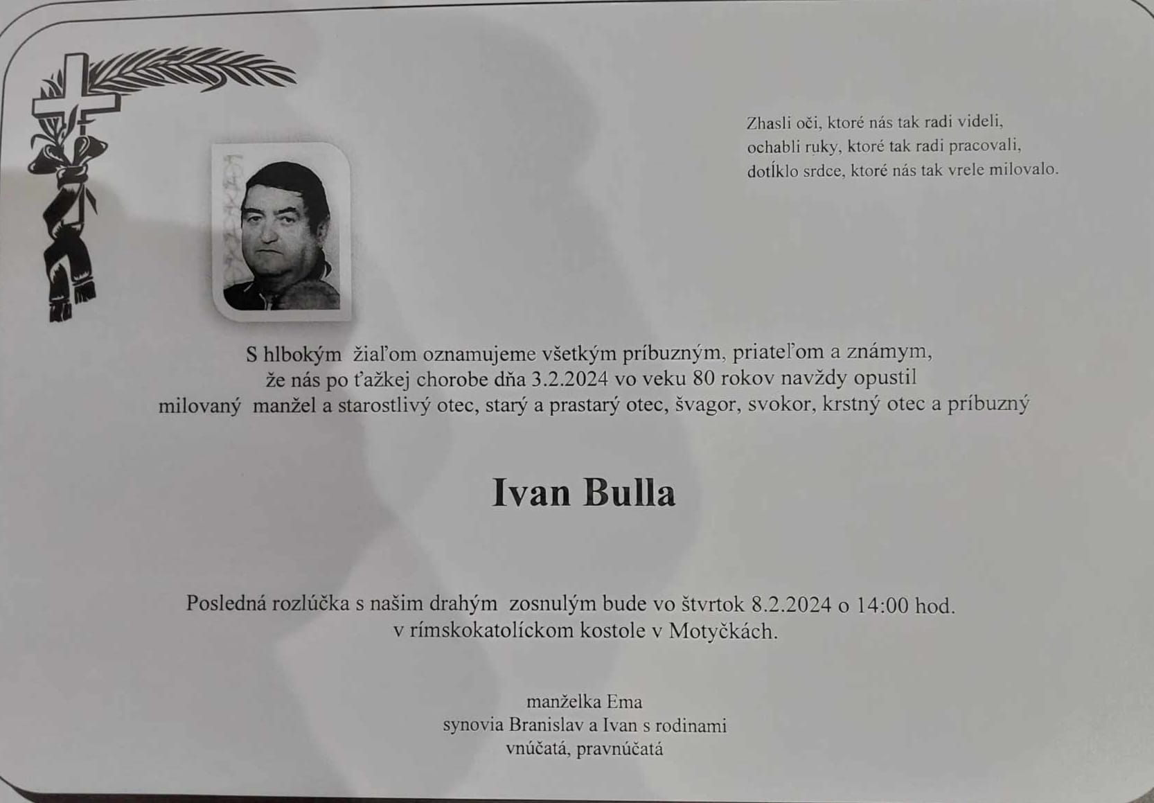 S hlbokým žiaľom oznamujeme, že nás navždy opustil dňa 03.02.2024, náš občan