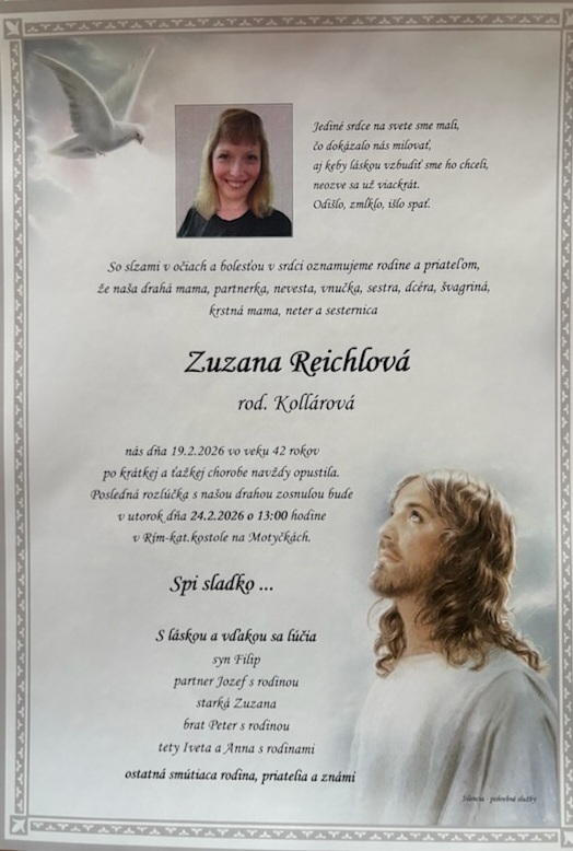 Zuzana Reichlová Kollárová naša rodáčka, priateľka a kamarátka prišlo to náhla a nečakane.